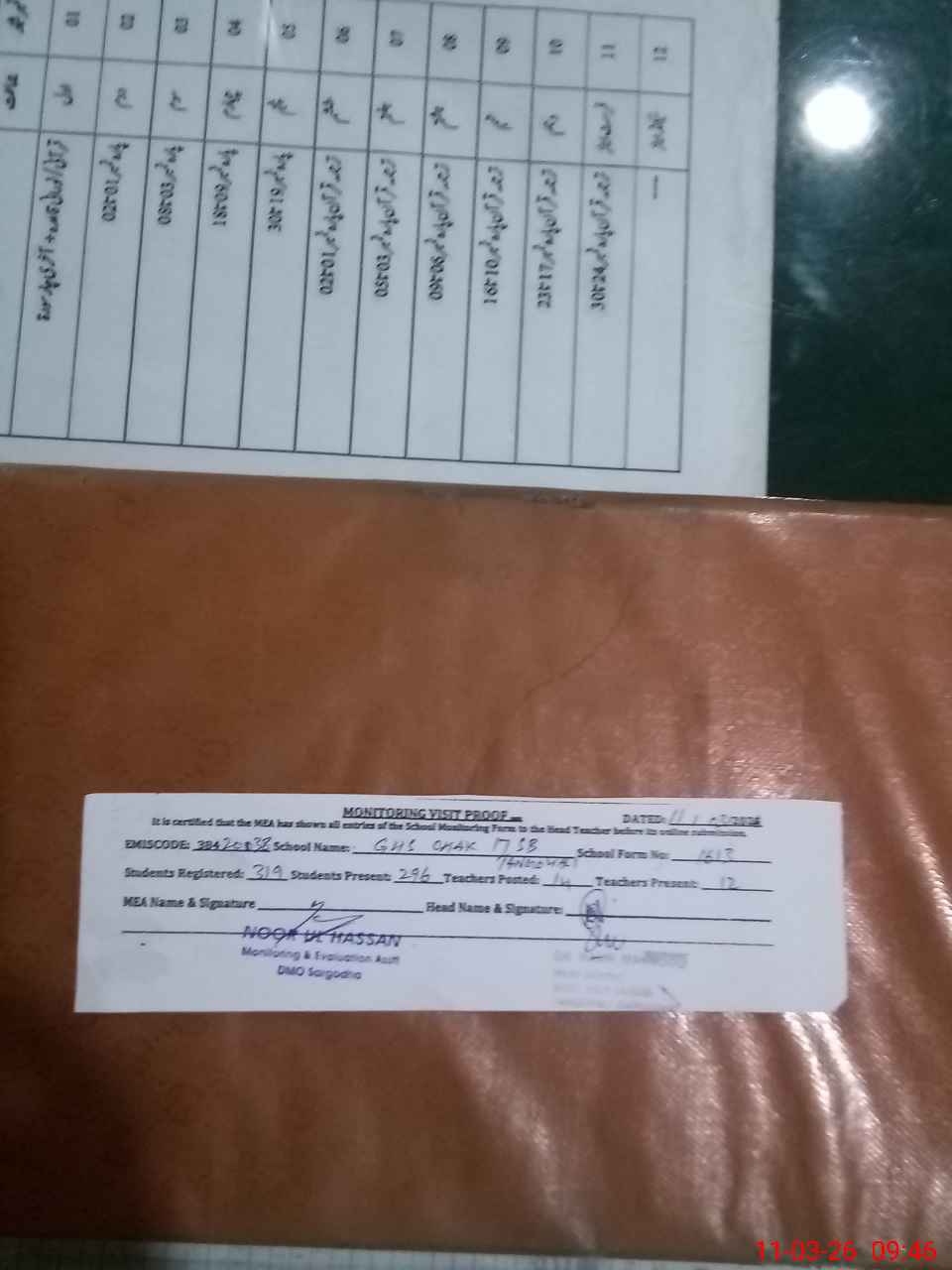 | EMIS Code: 38420038 | Name of School: GHS CHAK NO.17 SB TANGOWALI | |||