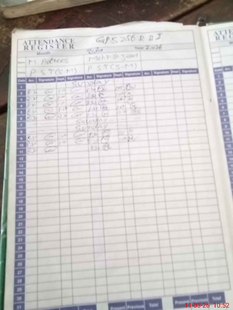 | Monitoring Date: 11-03-2026 | Start Time: 11-03-2026 10:27 AM | End Time: 11-03-2026 10:53 AM | Name of MEA: NA**** AN**** | |