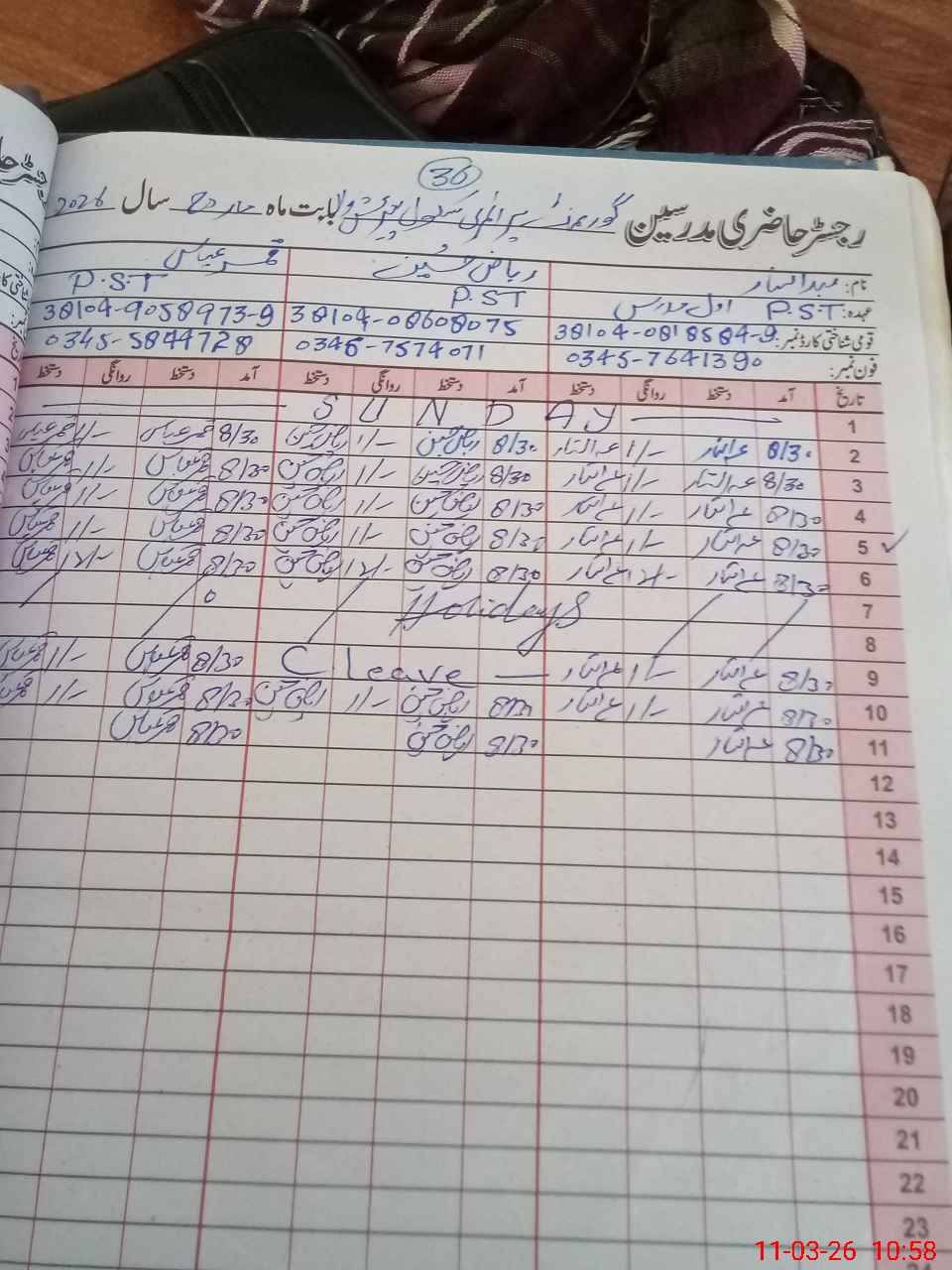 | CNIC | Full Name | Designation | R/C | Absence During Last Calender Month |