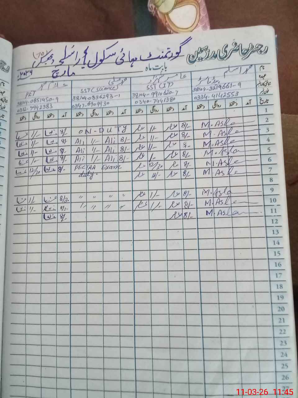 | 38**** | Mu**** Al**** | SST Science | Regular | 0 | 0 | 0 | 0 | 0 | 0 | 0 | 0 | 0 | Exam Duty |