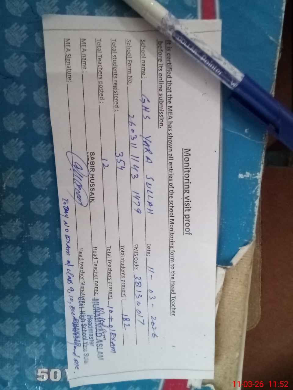 | Certified that this School was Inspected by the Undersigned MEA/DMO Today and the Information Stated Above is as Per Record. | |||||