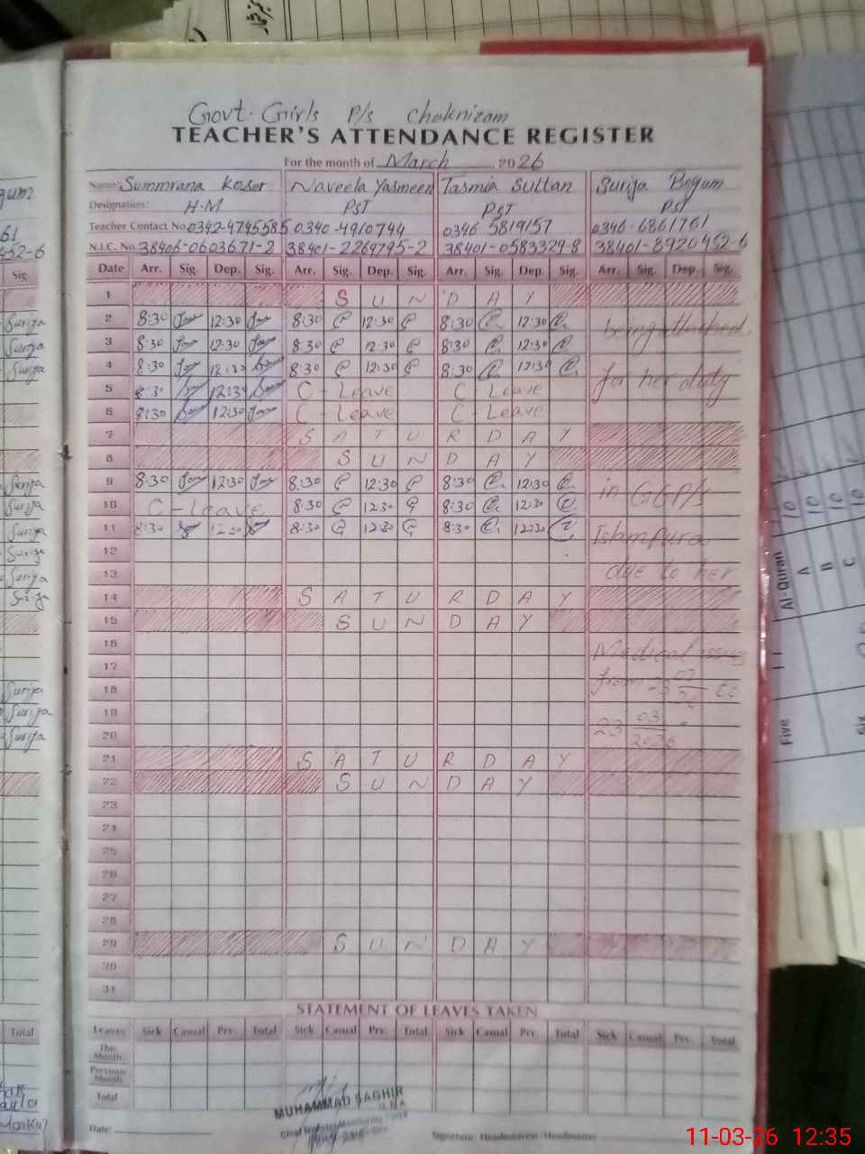| Name: SU**** KO**** Designation: (School Headmaster's/Headmistress's) PST Phone/Cell Number: 03**** |