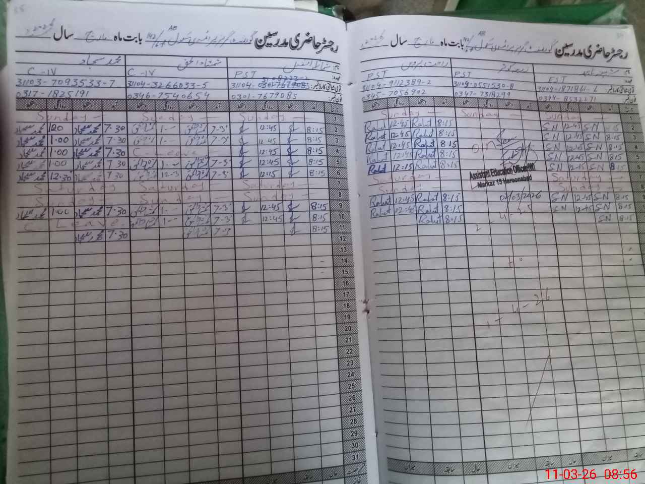 | Name: SH**** NA**** Designation: (School Headmaster's/Headmistress's) EST Phone/Cell Number: 03**** |