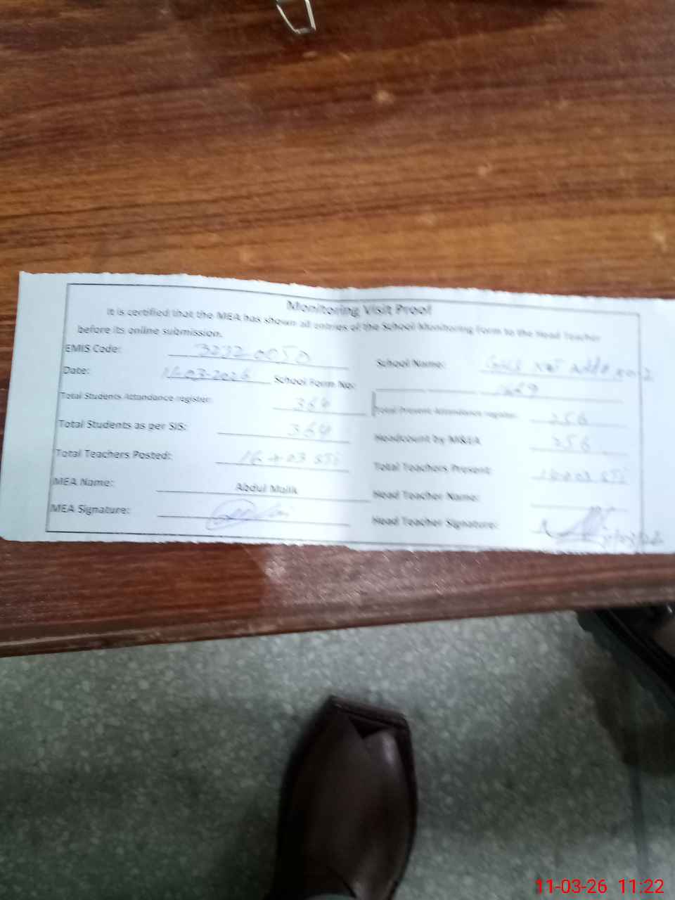 | Certified that this School was Inspected by the Undersigned MEA/DMO Today and the Information Stated Above is as Per Record. | |||||