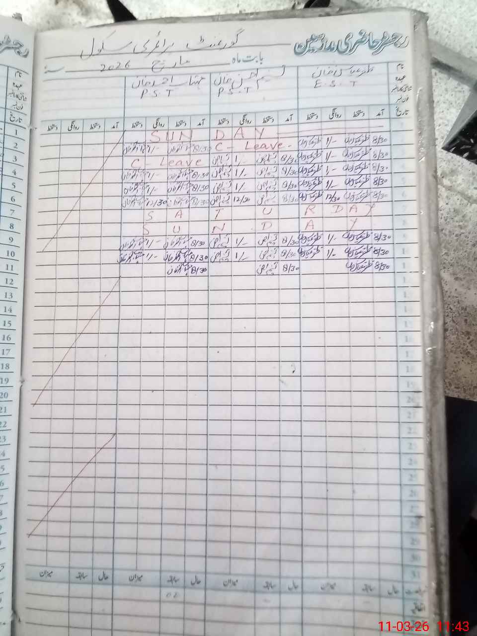 | Leave | Duty | Absent | Maternity | Medical | Ex- Pak |