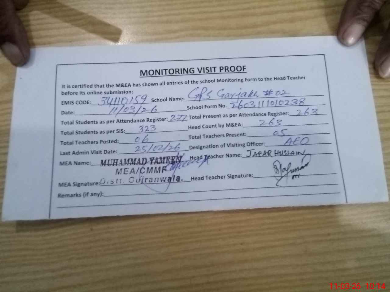 | EMIS Code: 34110159 | Name of School: GPS GHARJAKH NO.2 | |||