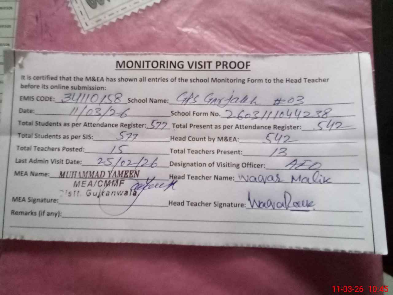 | EMIS Code: 34110158 | Name of School: GPS GHARJAKH NO.3 | |||