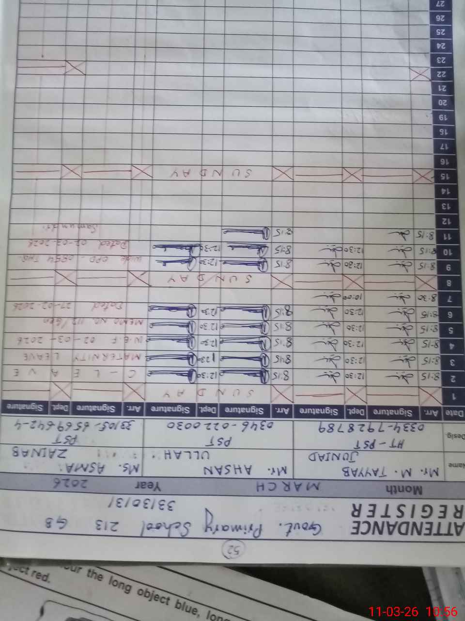 | Name: MTA**** JU**** Designation: (School Headmaster's/Headmistress's) PST Phone/Cell Number: 03**** |