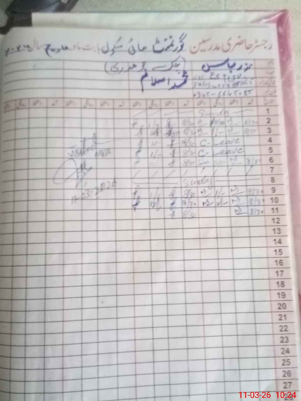 | Name: MU**** AZ**** Designation: (School Headmaster's/Headmistress's) HEADMASTER Phone/Cell Number: 03**** |