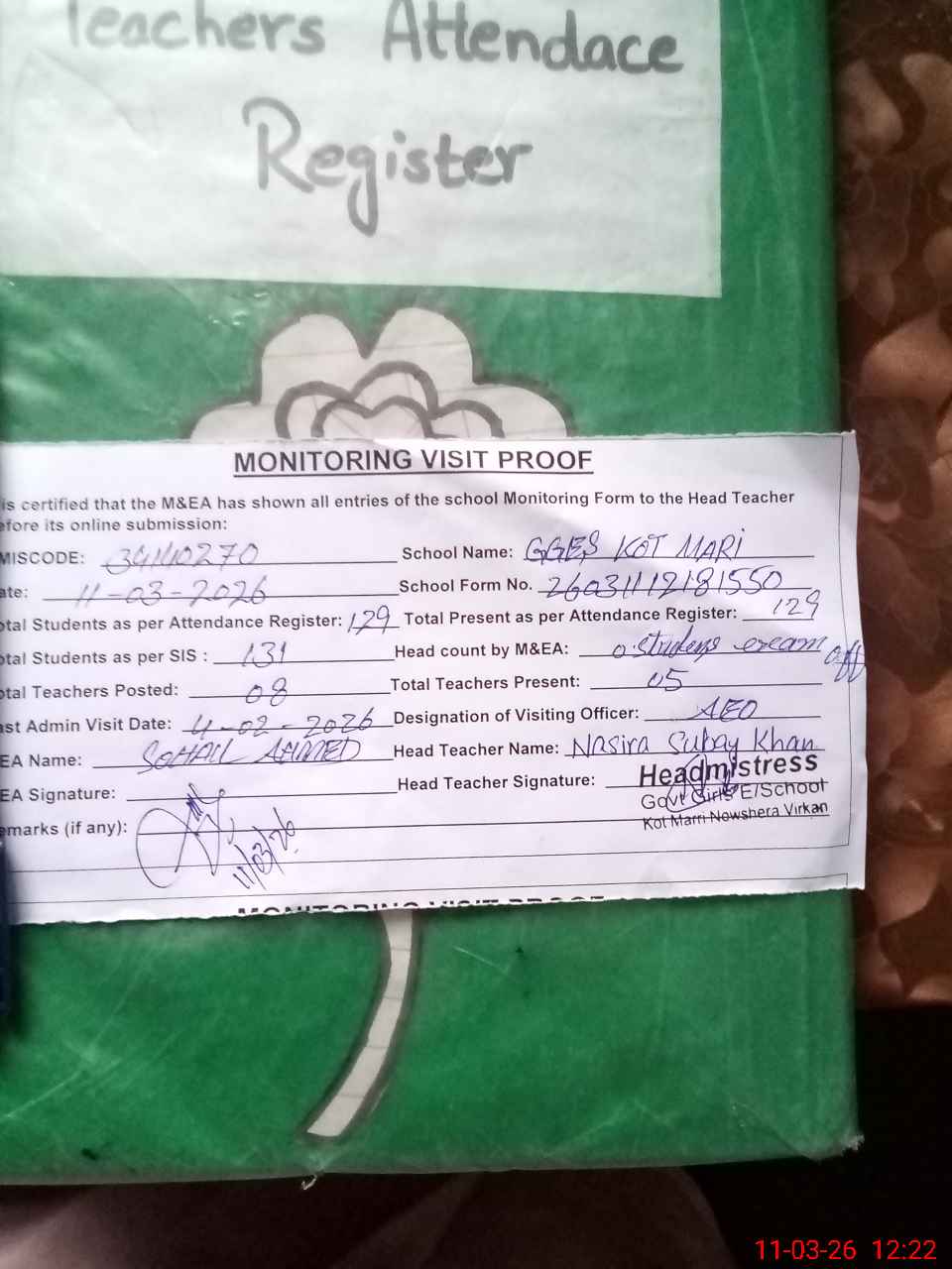 | EMIS Code: 34140270 | Name of School: GGES KOT MARI | |||