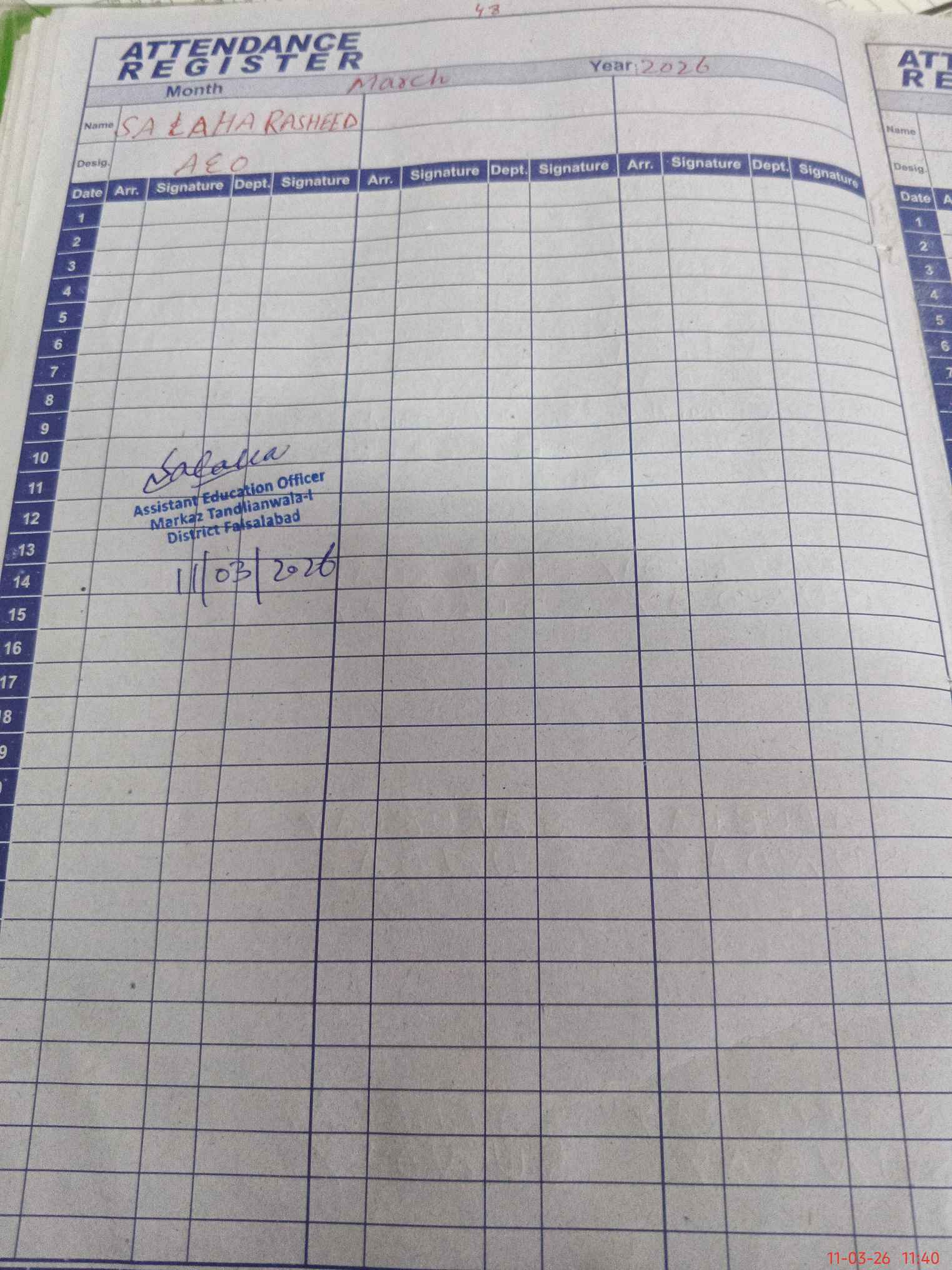 | Monitoring Date: 11-03-2026 | Start Time: 11-03-2026 11:22 AM | End Time: 11-03-2026 11:41 AM | Name of MEA: SA**** RA**** | |