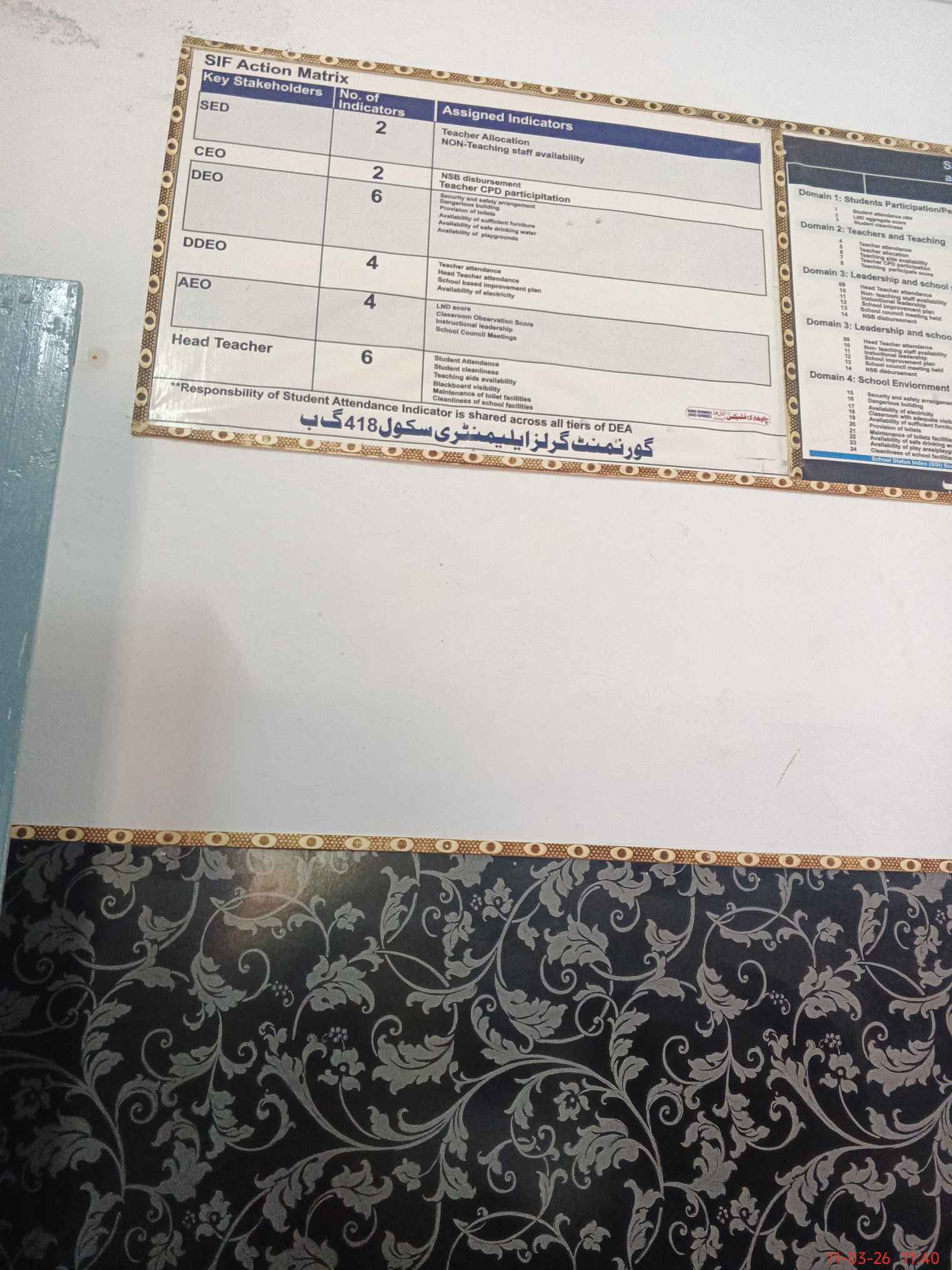 | Certified that this School was Inspected by the Undersigned MEA/DMO Today and the Information Stated Above is as Per Record. | |||||