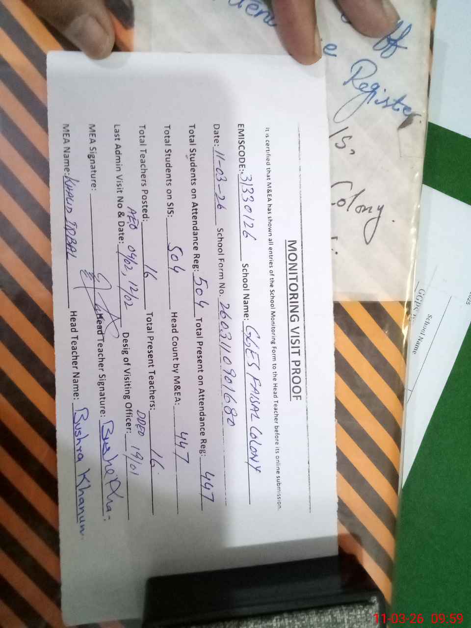 | EMIS Code: 31330126 | Name of School: GGES FAISAL COLONY | |||