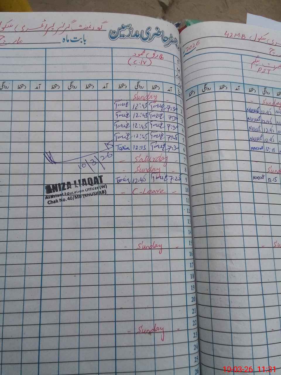 | District: KHUSHAB | Tehsil: KHUSHAB | Markaz: CHAK NO 40/MB (FEMALE) | Level: Primary | |