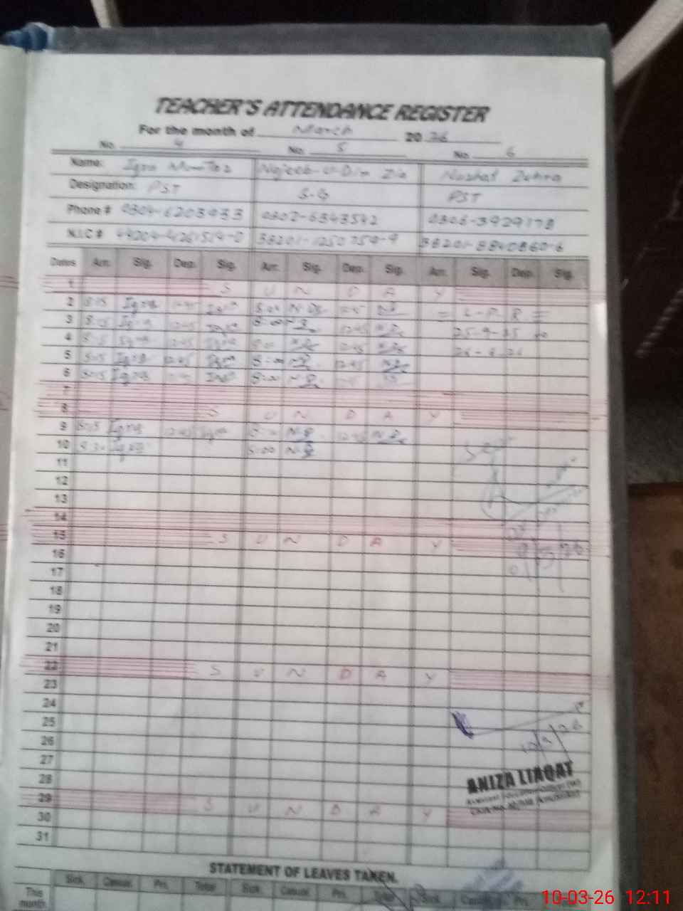 | Name: Nu**** Za**** Designation: (School Headmaster's/Headmistress's) PST Phone/Cell Number: 03**** |
