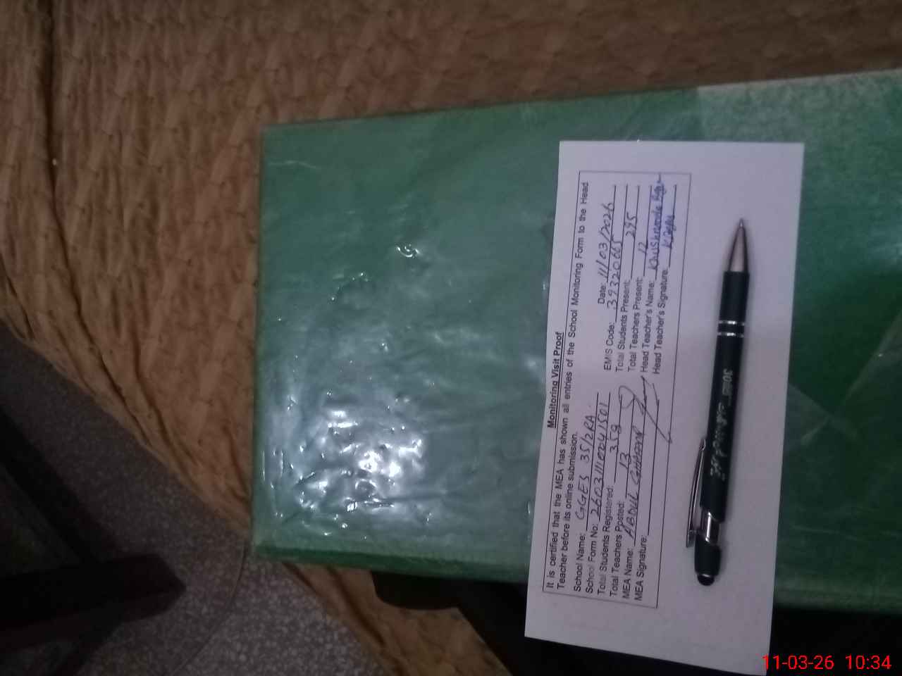 | Remarks (Use Separate Page if Required): Class 1 (Total student 48) has no SBA on 11-03-26 | |||||