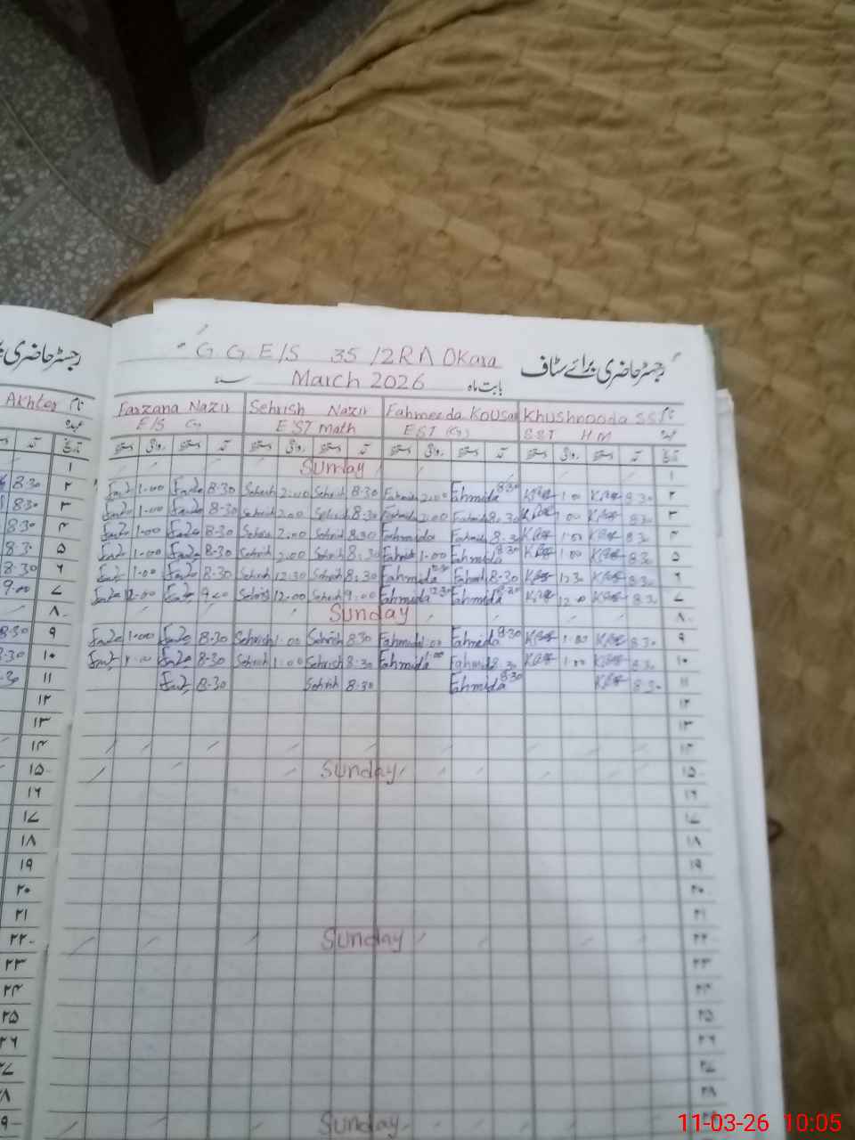| Name: KH**** BE**** Designation: (School Headmaster's/Headmistress's) SST Phone/Cell Number: 03**** |
