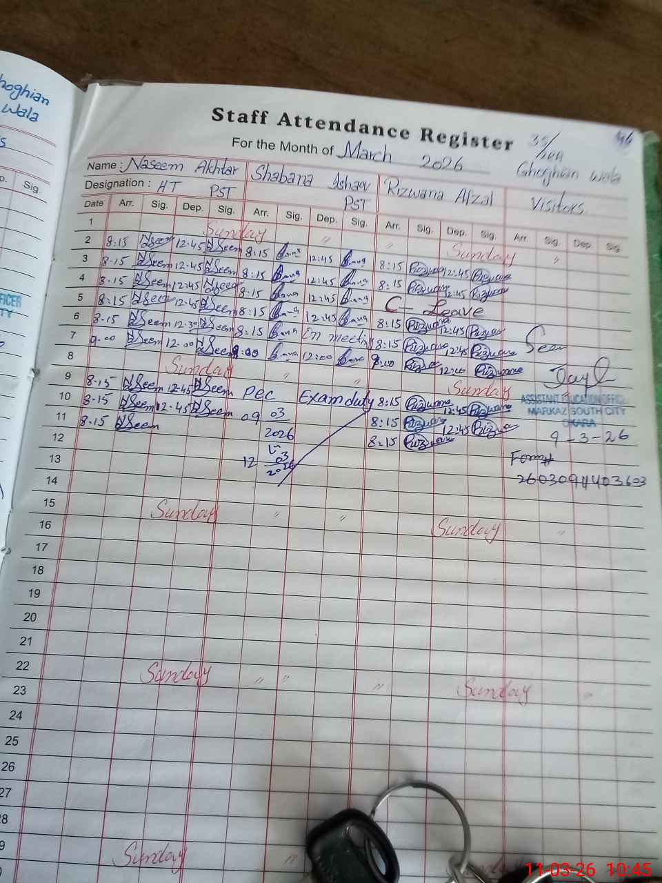 | 35**** | Sh**** Is**** | PST Arts | Regular | 0 | 0 | 0 | 0 | 0 | 0 | 0 | 0 | 0 | Exam Duty |