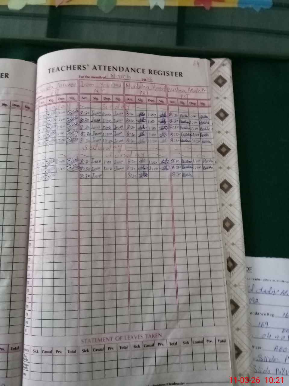 | Leave | Duty | Absent | Maternity | Medical | Ex- Pak |