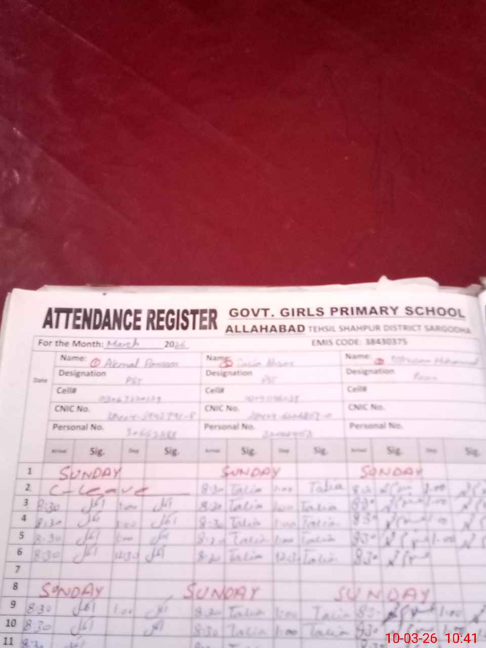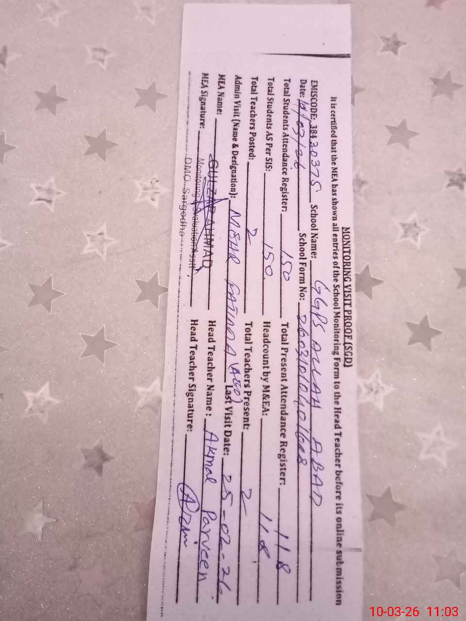 | EMIS Code: 38430375 | Name of School: GGPS ALLAH ABAD | |||