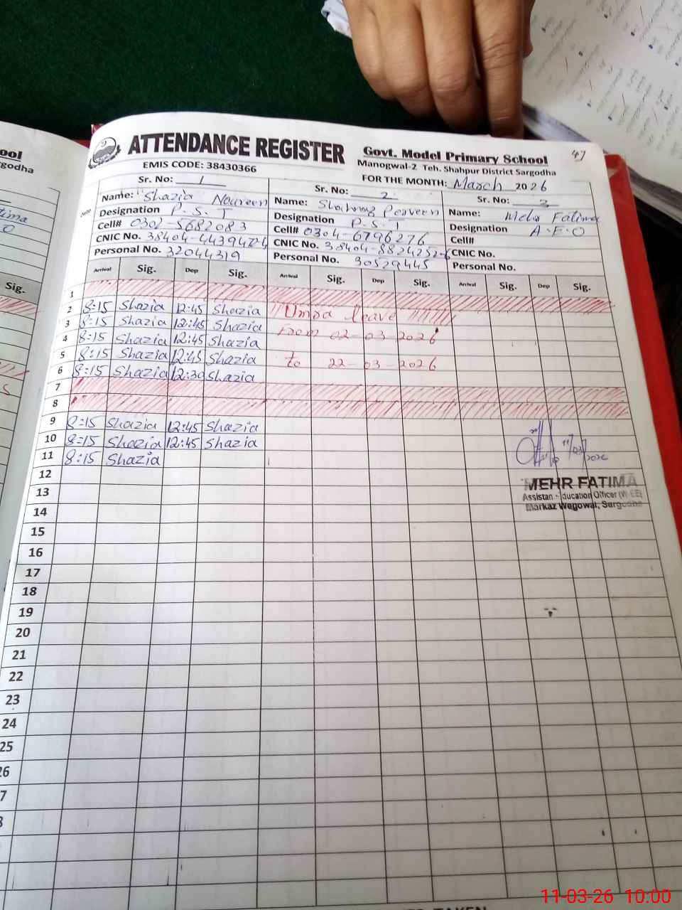 | District: SARGODHA | Tehsil: SHAHPUR | Markaz: WEGOWAL - FEMALE | Level: Primary | |