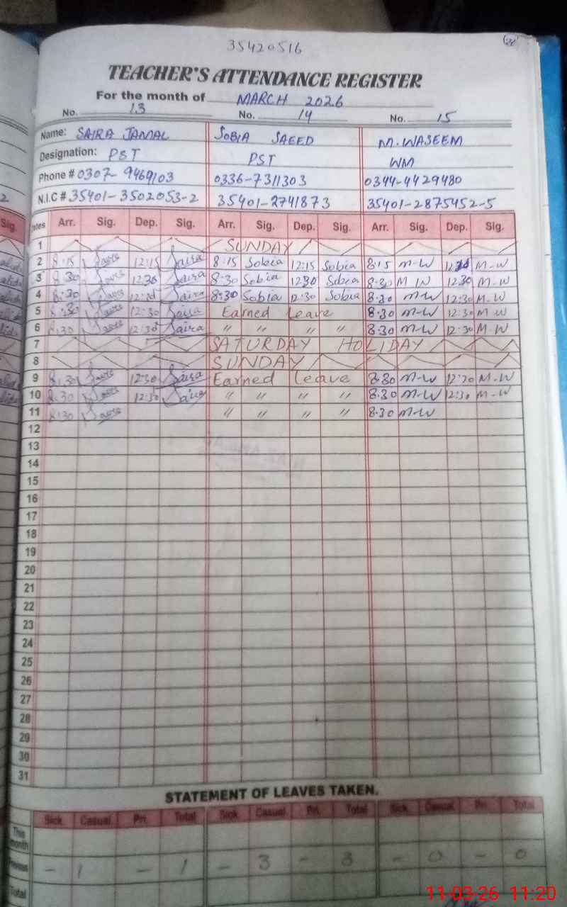 | 35**** | An**** Af**** | PST Arts | Regular | 0 | 0 | 0 | 0 | 0 | 0 | 0 | 0 | 0 | Exam Duty |