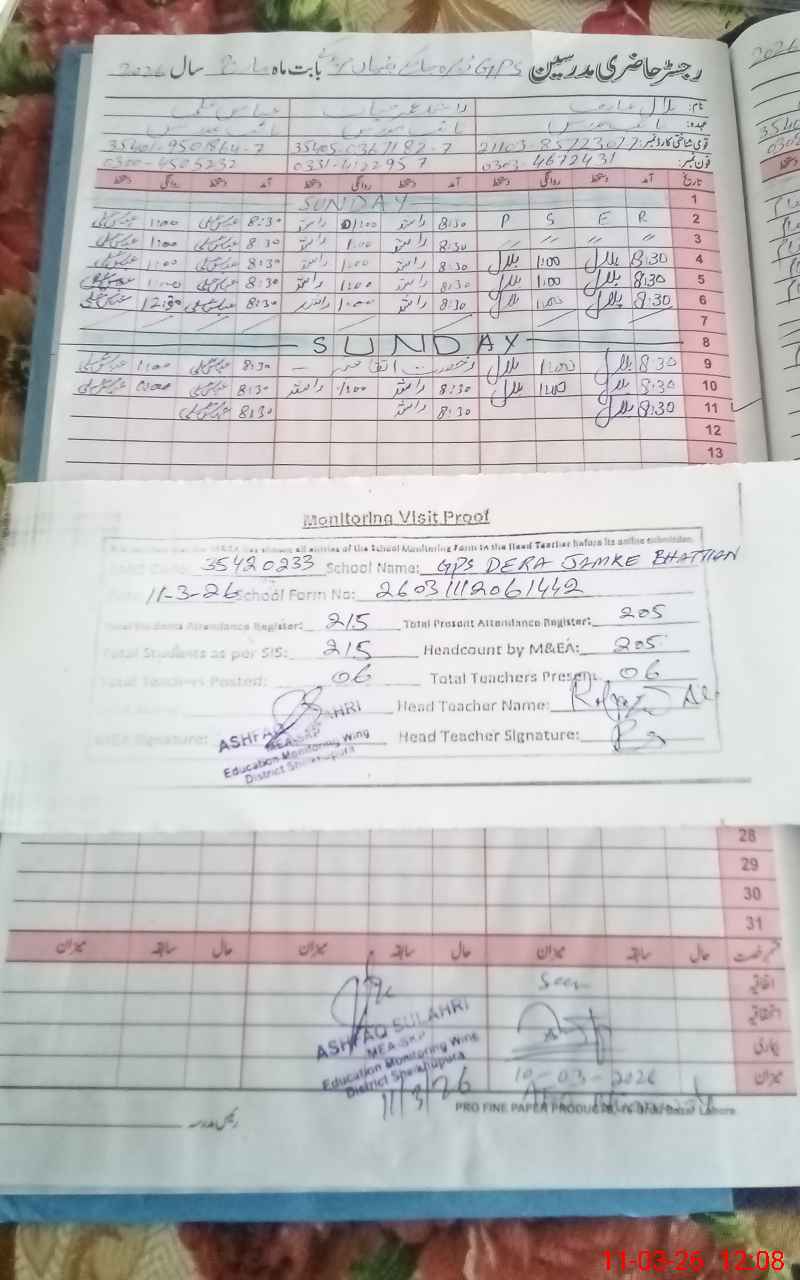 | EMIS Code: 35420233 | Name of School: GPS DERA JAMKE BHATTIAN | |||