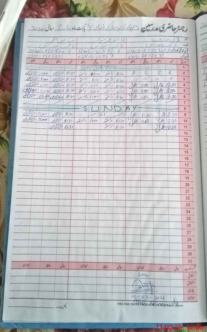 | Name: RA**** AL**** Designation: (School Headmaster's/Headmistress's) PTC/JV Phone/Cell Number: 03**** |