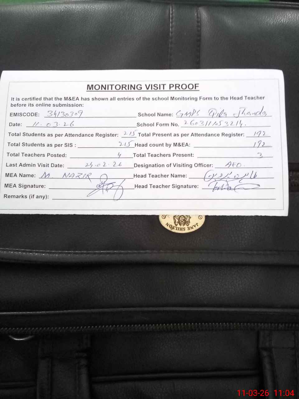 | EMIS Code: 34130309 | Name of School: GMPS QILA JANDA | |||