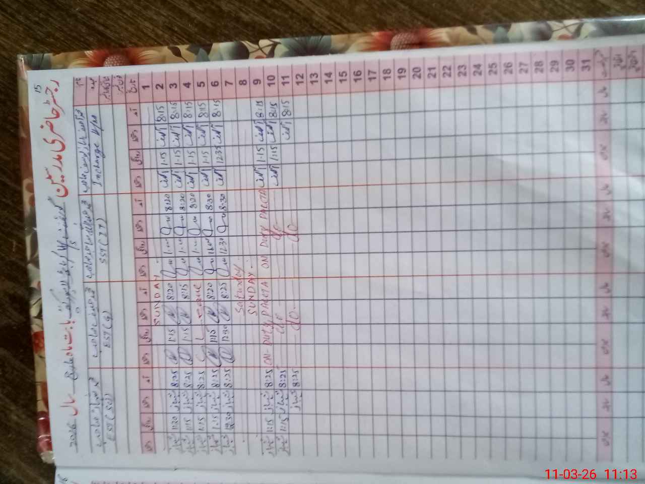 | 35**** | Mu**** Im**** Sh**** | PST Arts | Regular | 0 | 0 | 0 | 0 | 0 | 0 | 0 | 0 | 0 | Exam Duty |