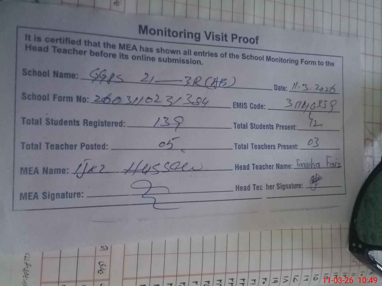 | EMIS Code: 31140359 | Name of School: GGPS CHAK NO. 21/3-R (AB) | |||