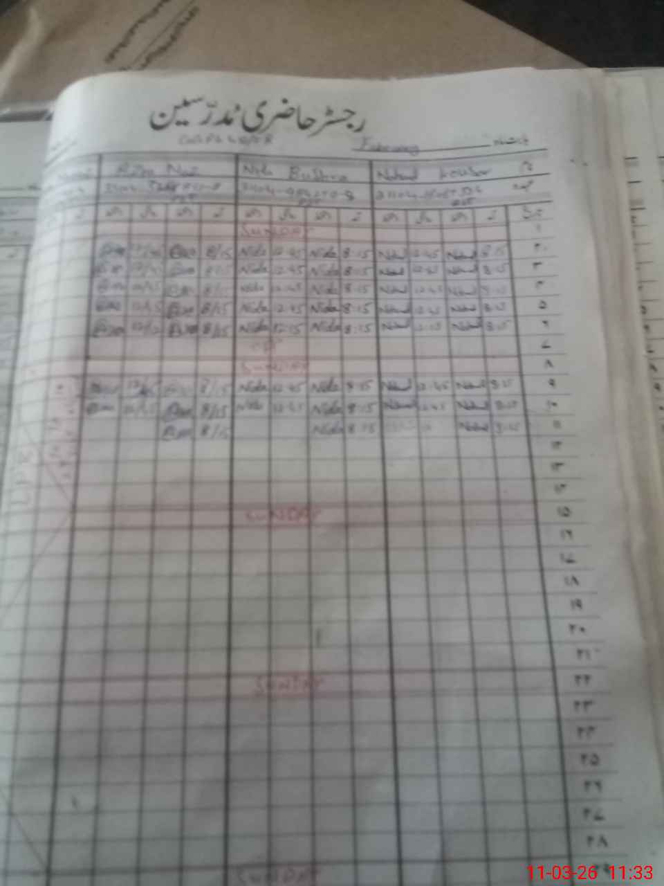 | CNIC | Full Name | Designation | R/C | Absence During Last Calender Month |