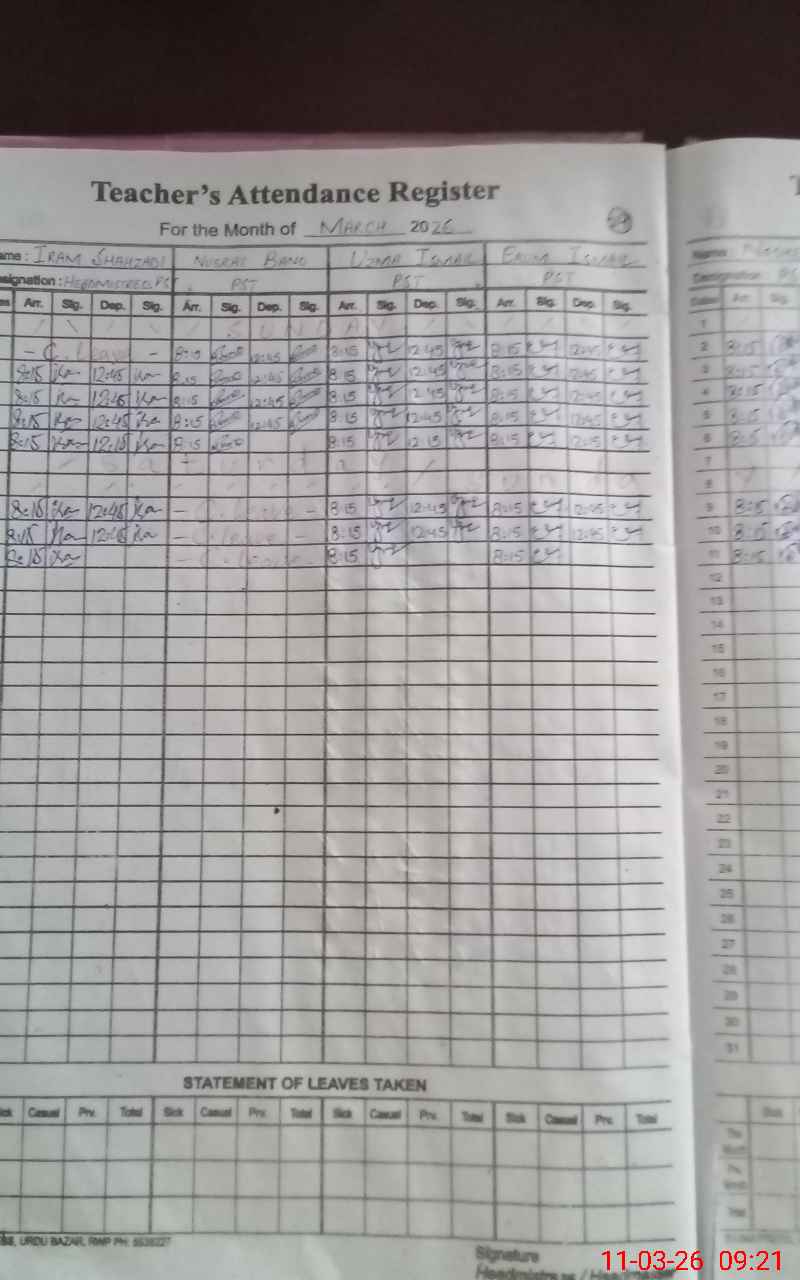 | Attendance Register | Head Teacher | MEA with School | Visit Proof |