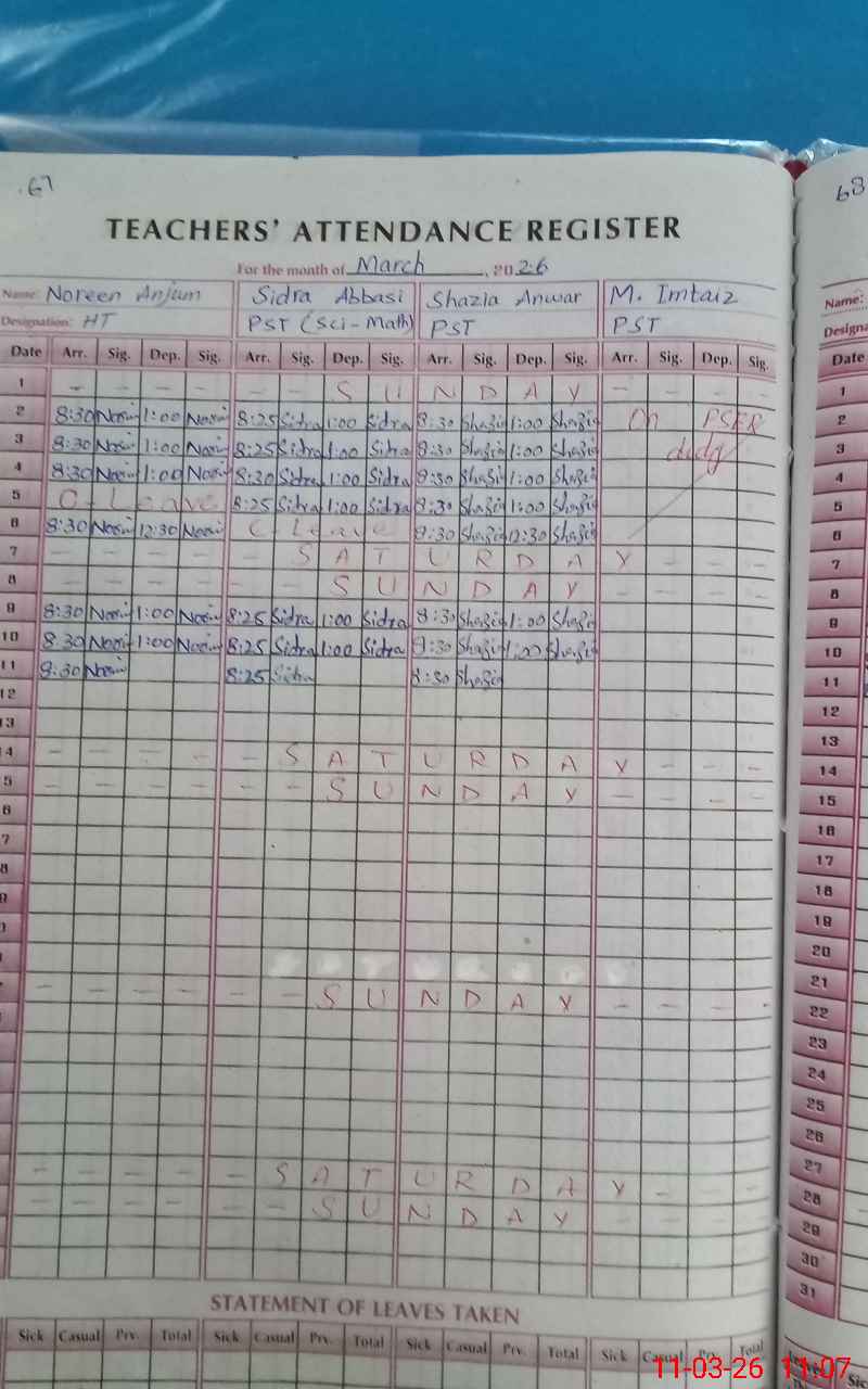 | Name: NO**** Designation: (School Headmaster's/Headmistress's) PST Phone/Cell Number: 03**** |