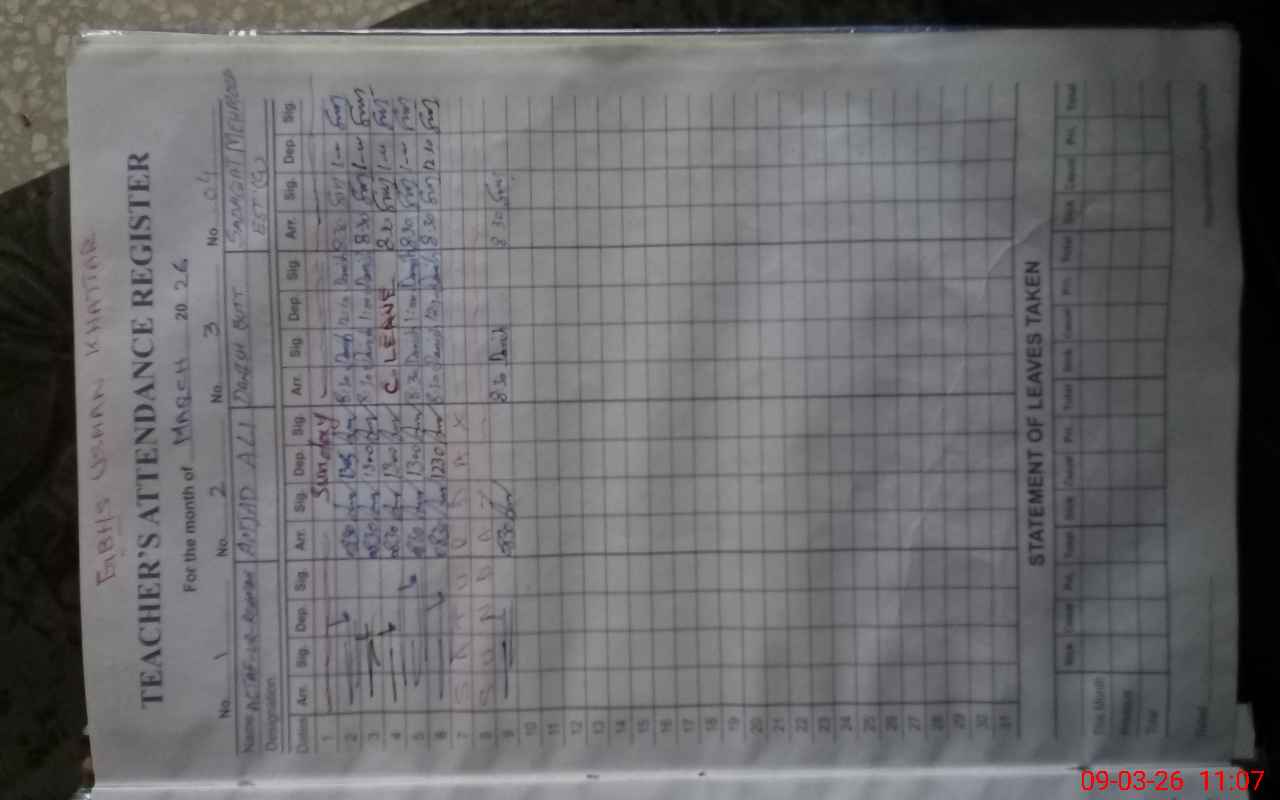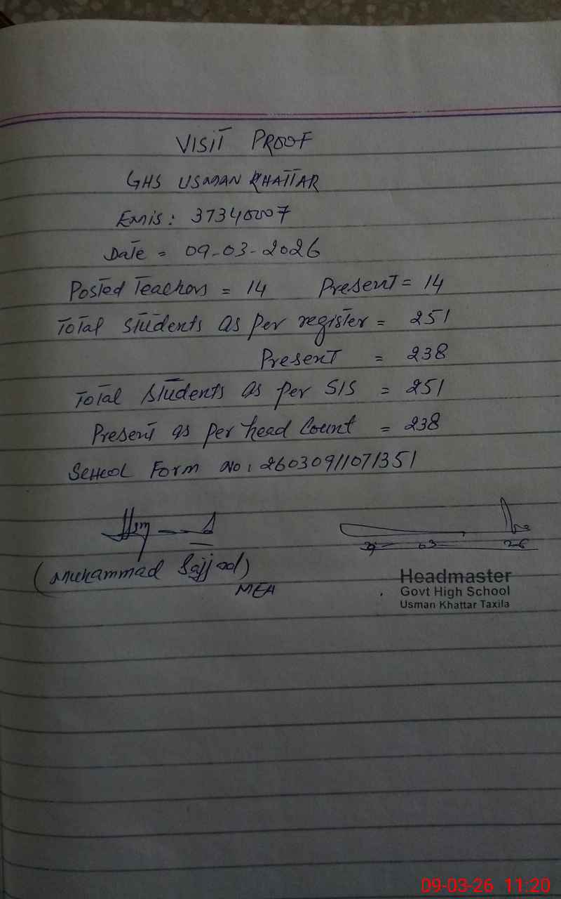 | EMIS Code: 37340007 | Name of School: GHS USMAN KHATTAR | |||