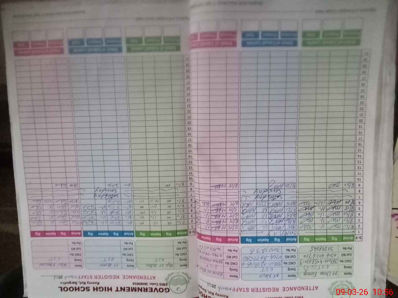 | CNIC | Full Name | Designation | R/C | Absence during last cal. month |