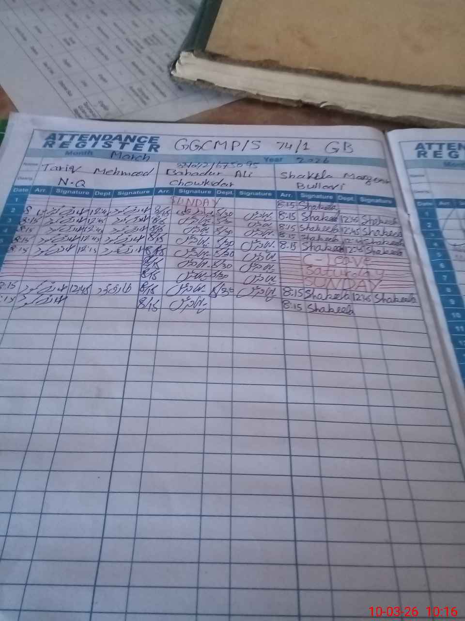 | 33**** | Na**** Ak**** | PST Arts | Regular | 0 | 0 | 0 | 0 | 0 | 0 | 0 | 0 | 0 | Exam Duty |