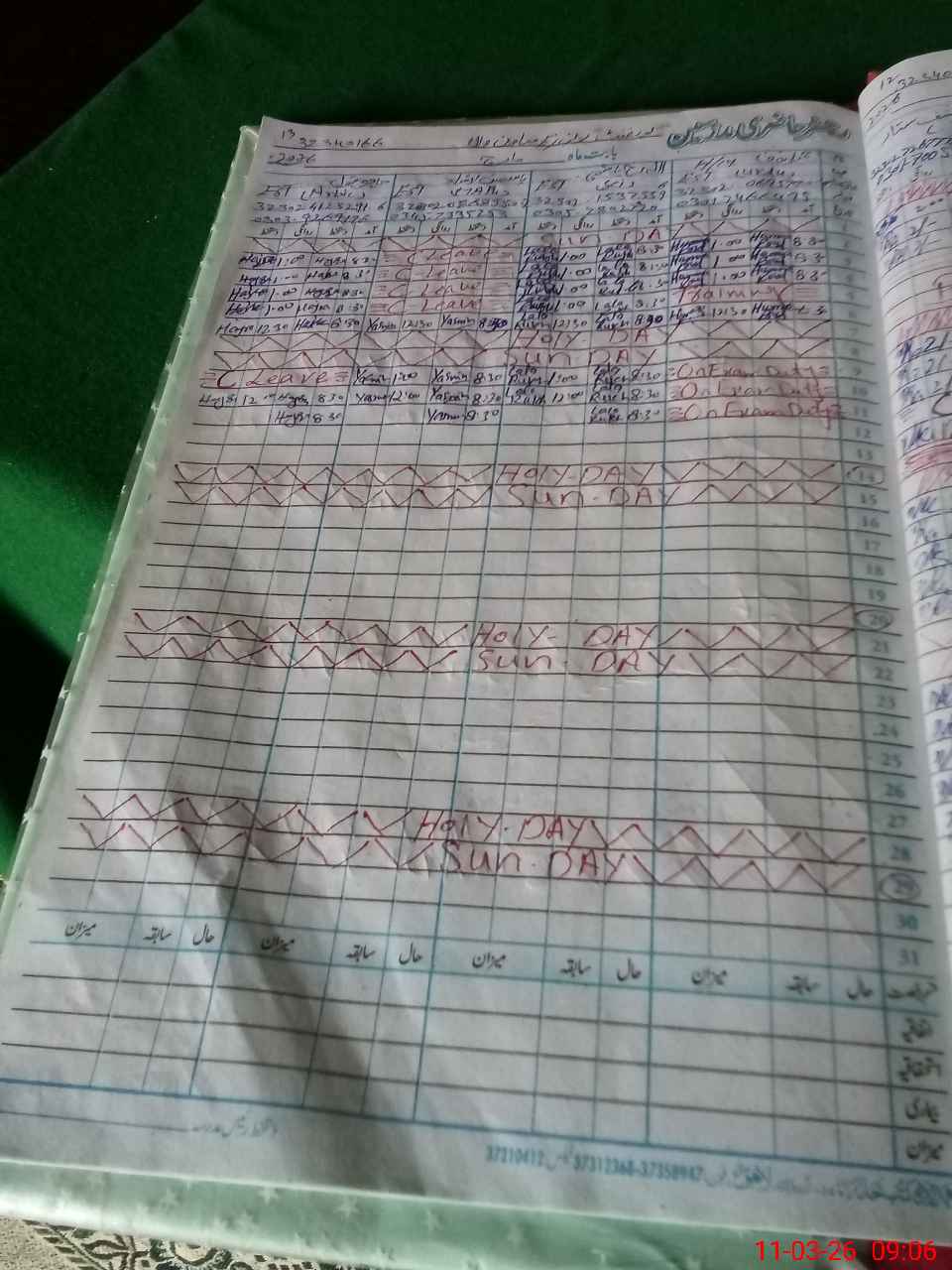 | 32**** | Hu**** Ro**** | EST Urdu | Regular | 0 | 0 | 0 | 0 | 0 | 0 | 0 | 0 | 0 | Exam Duty |