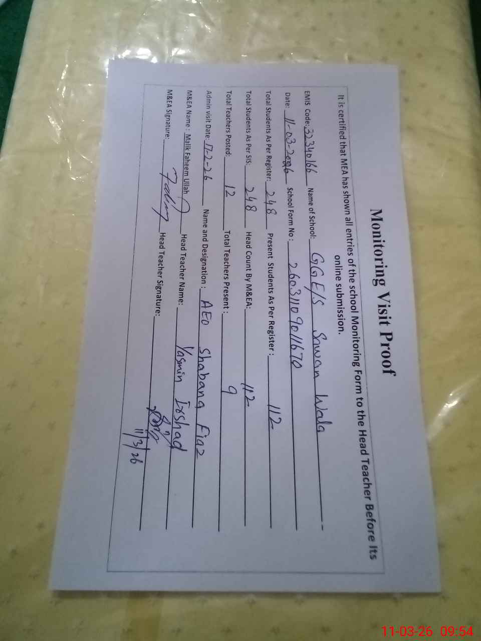| EMIS Code: 32340166 | Name of School: GGES SAWAN WALA | |||