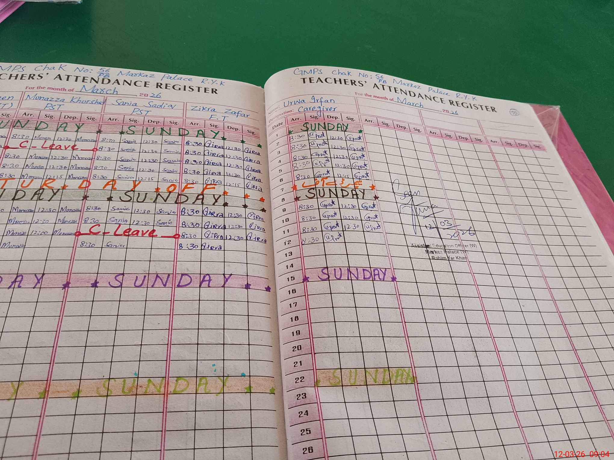 | Name: Uz**** Na**** Designation: (School Headmaster's/Headmistress's) PST Phone/Cell Number: 03**** |
