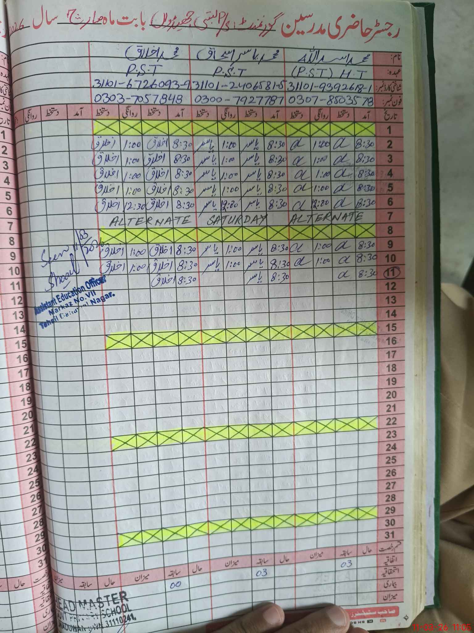 | Name: MU**** As**** Ul**** Designation: (School Headmaster's/Headmistress's) PST Phone/Cell Number: 03**** |