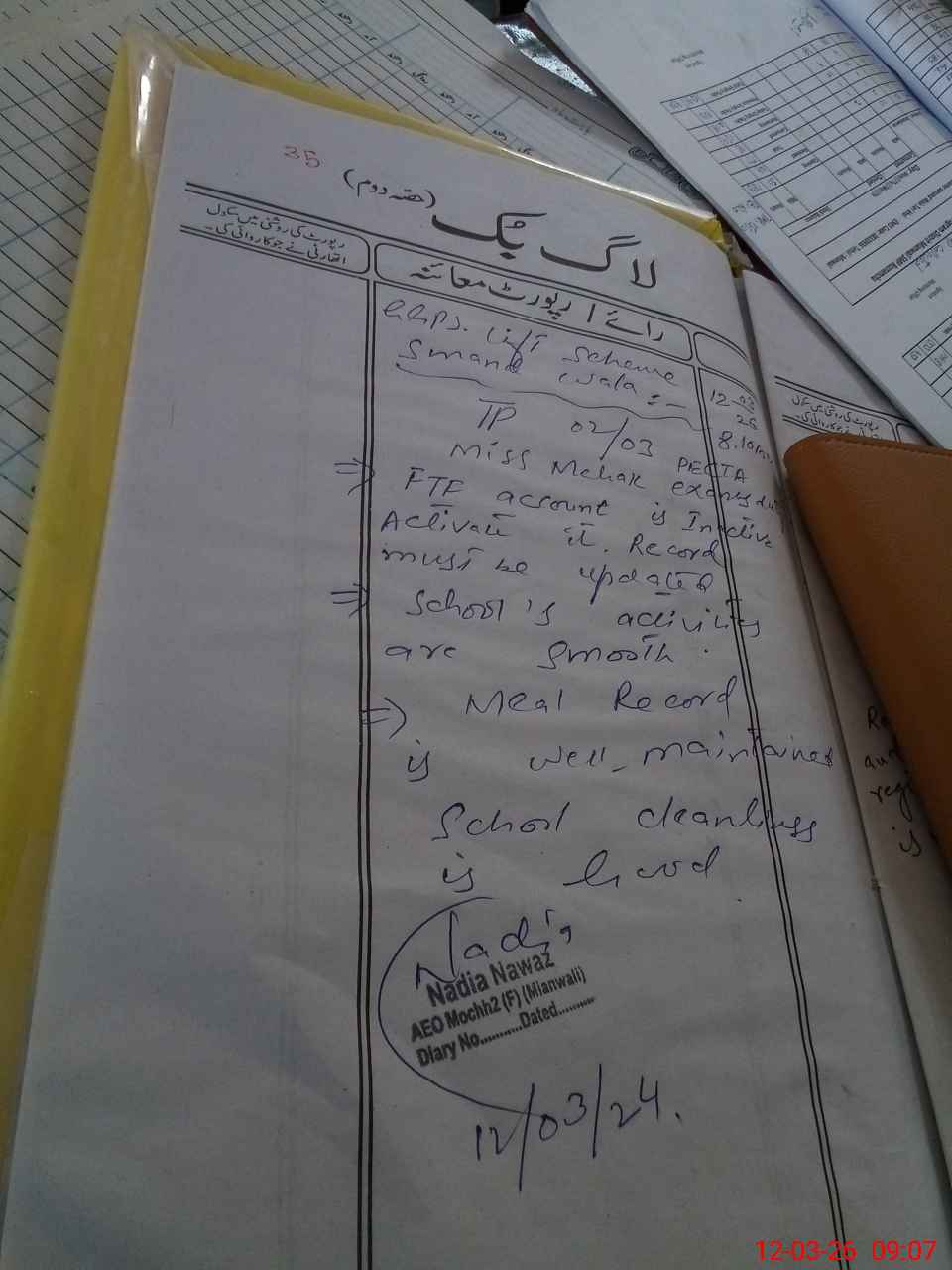 | Certified that this School was Inspected by the Undersigned MEA/DMO Today and the Information Stated Above is as Per Record. | |||||
