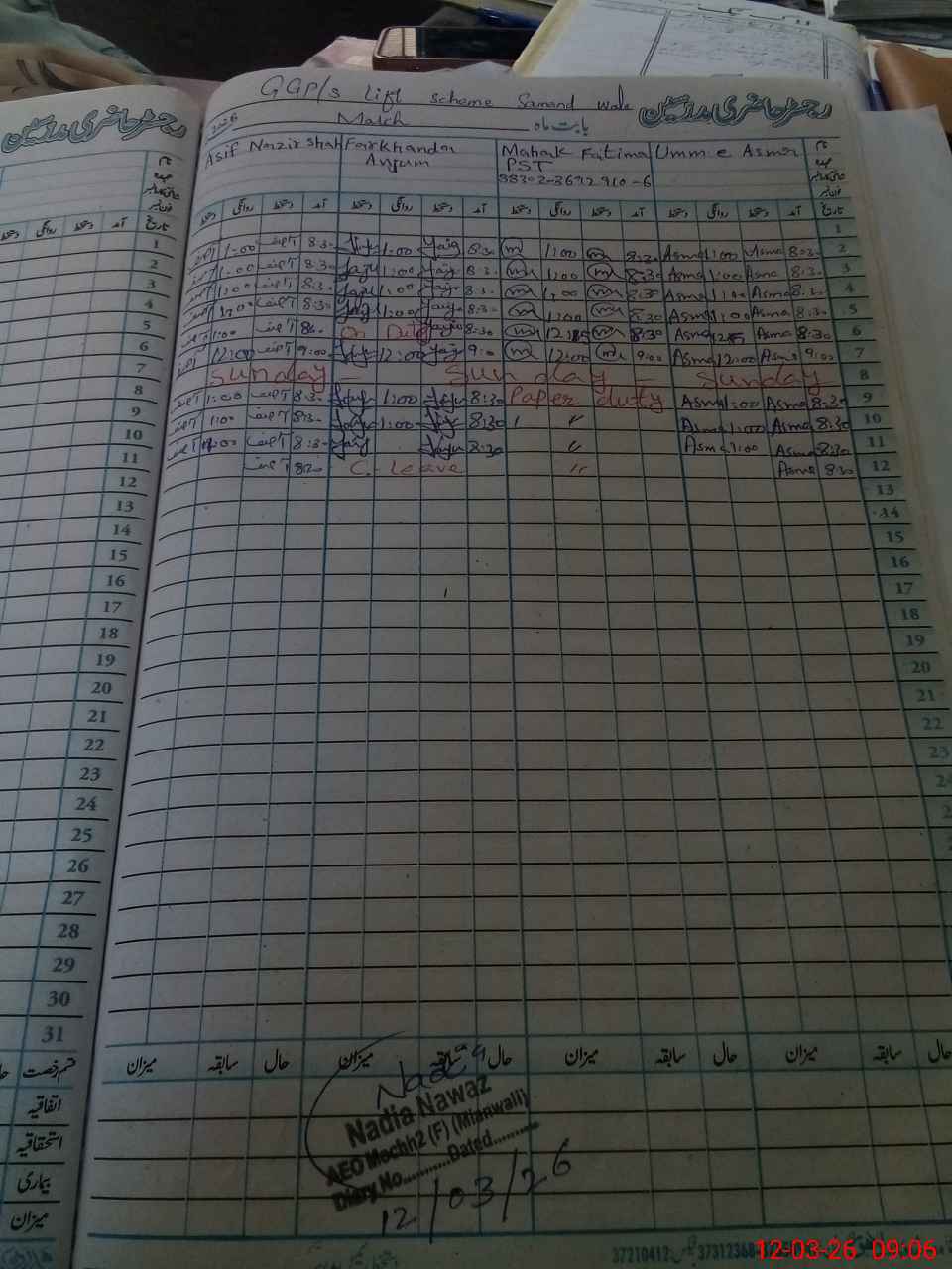 | District: MIANWALI | Tehsil: MIANWALI | Markaz: MOCHH NO.2-FEMALE | Level: Primary | |
