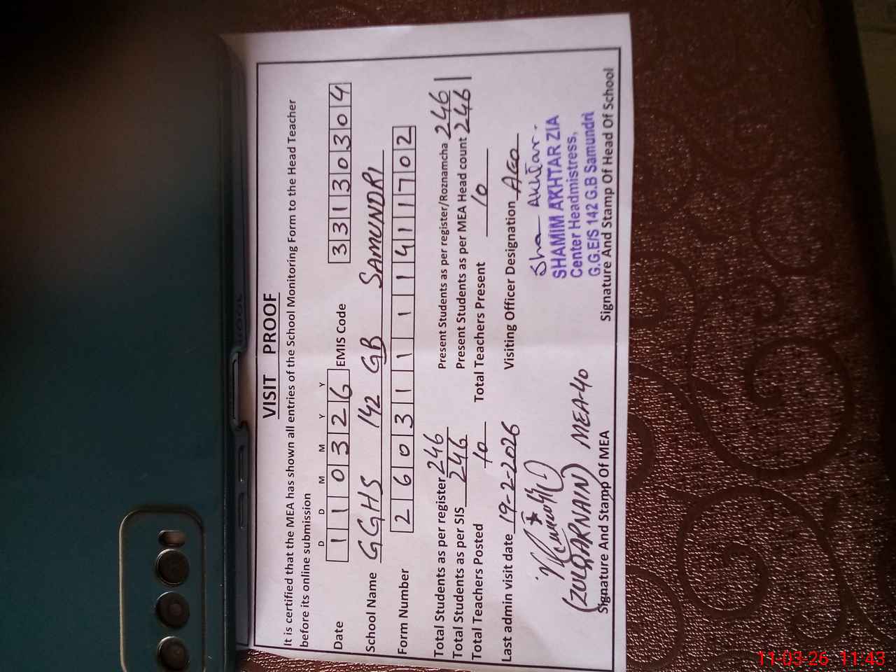 | EMIS Code: 33130304 | Name of School: GGHS CHAK NO 142 GB | |||