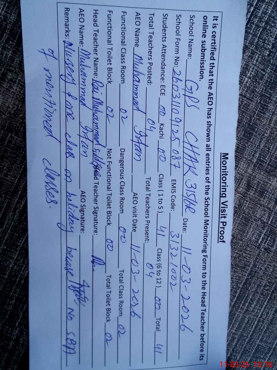 | EMIS Code: 31321002 | Name of School: GPS CHAK NO.315 | |||