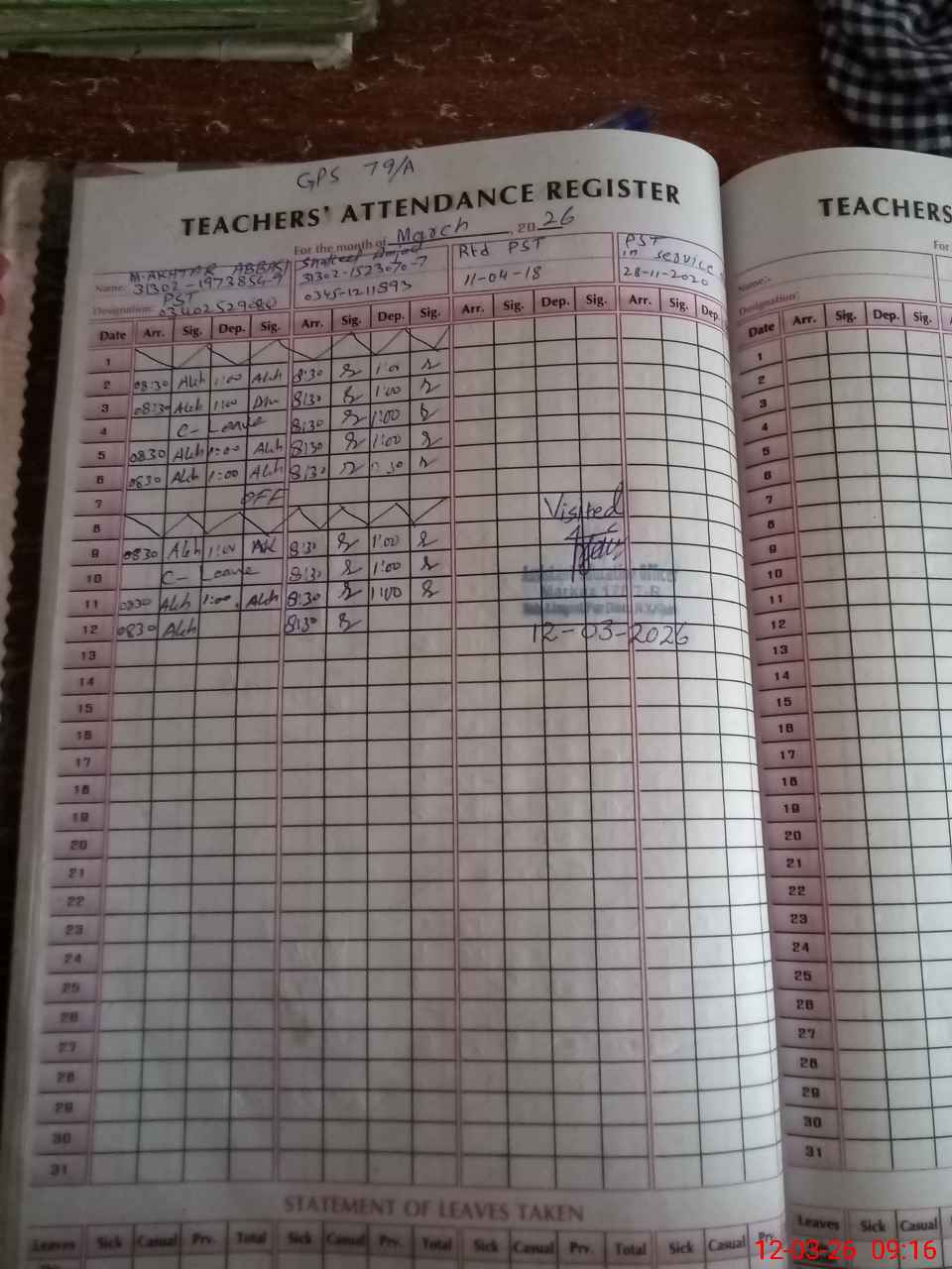 | Name: Mu**** Ak**** Ab**** Designation: (School Headmaster's/Headmistress's) PST Phone/Cell Number: 03**** |