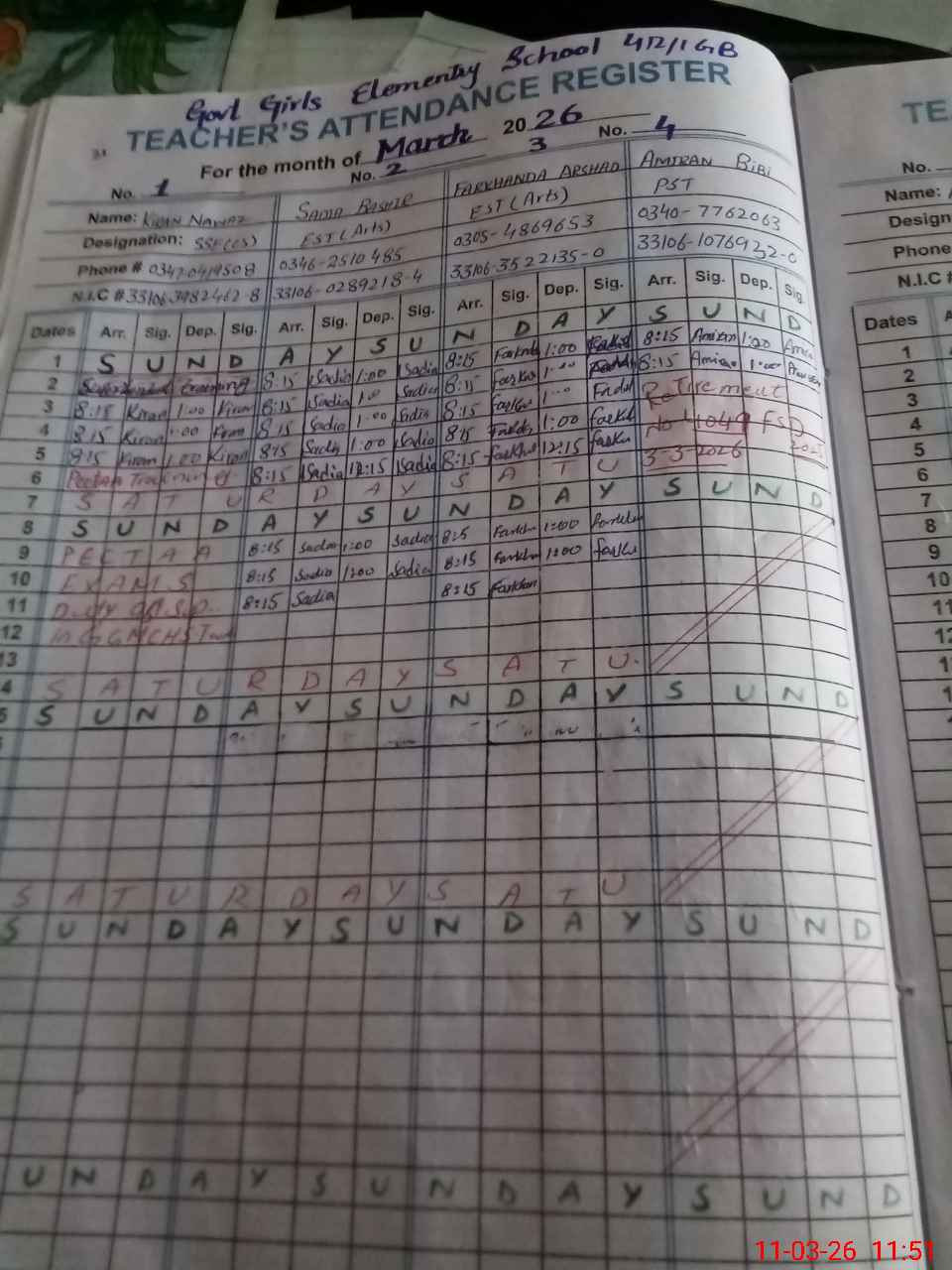 | 33**** | Mu**** Sh**** | N Q | 0 | 0 | 0 | 0 | 0 | 0 | 0 | 0 | 0 | Exam Duty | |