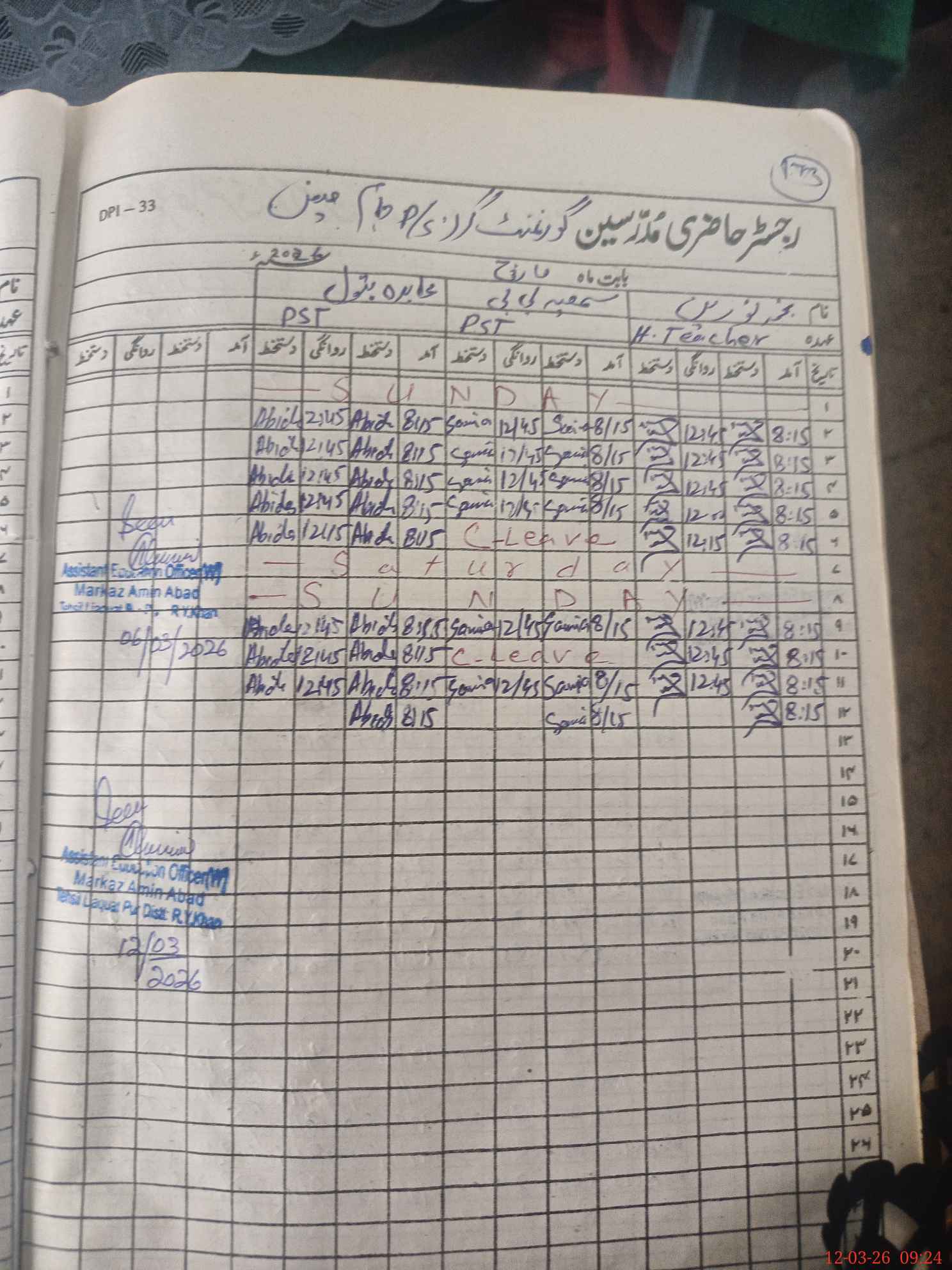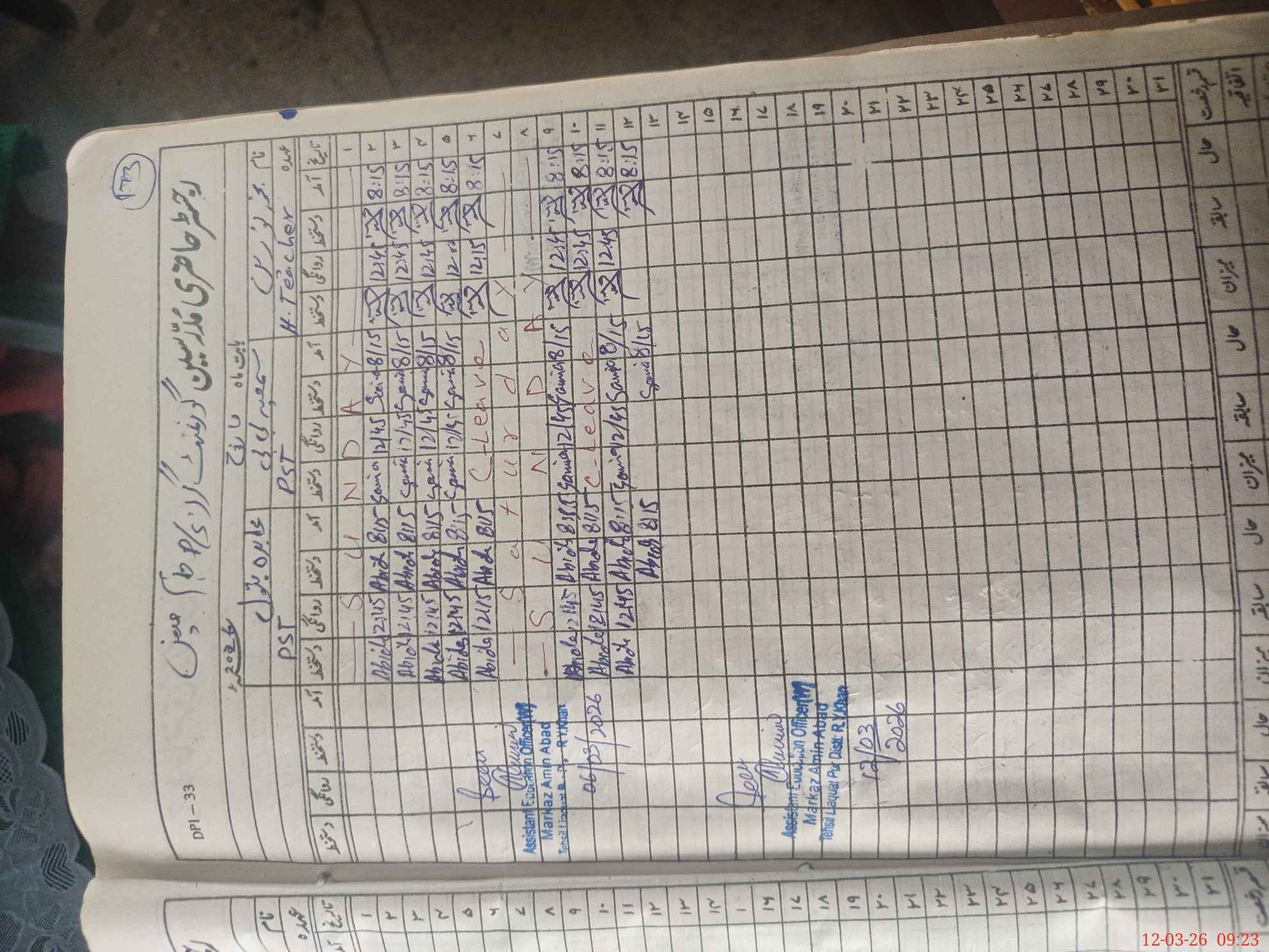 | Name: AB**** BA**** Designation: (School Headmaster's/Headmistress's) PST/PTC/JV Phone/Cell Number: 03**** |