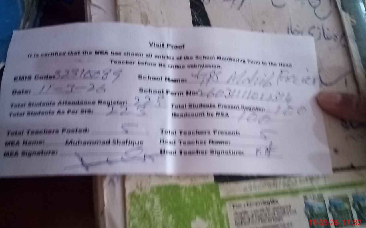 | EMIS Code: 32310089 | Name of School: GPS MOHIB FAQIR | |||
