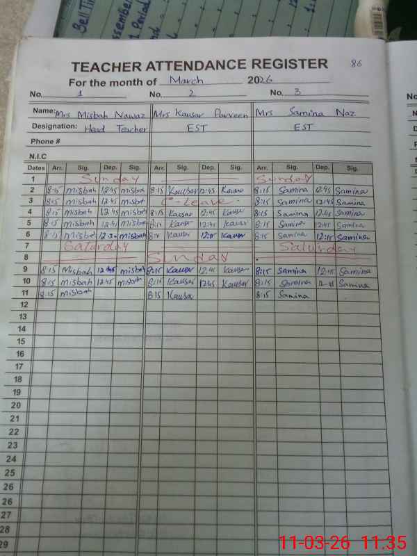 | Attendance Register | Head Teacher | MEA with School | Visit Proof |
